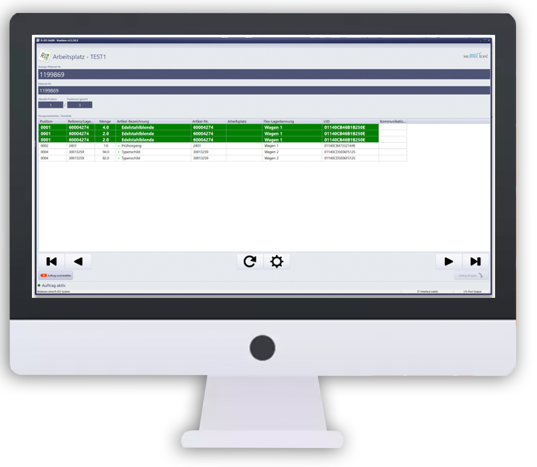 Direkt mit dem Starten des Auftrags, erfolgt eine Prüfung der Daten und ein Abgleich zwischen Stückliste und des am Montageplatz vorhandenen Materials.